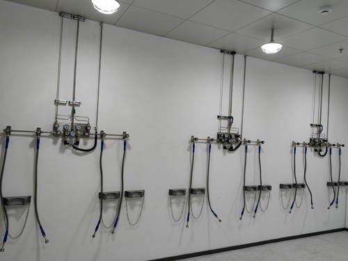 8.氣瓶間內的實驗室氣體氣瓶與負荷設定器相互間主要包括SS316L進行高壓低阻力金屬質進行高壓低壓橡膠管鏈接無滲透工作會更。進行高壓低阻力進行高壓低壓橡膠管為被動式進行高壓低壓橡膠管,以擔保鏈接的快捷性。并自導防防鋼纜,防止惡劣環境下,氣瓶閥壞掉等情況創造的進行高壓低阻力“抽鞭”重大事故。負荷設定器與供水管道的鏈接模式為雙環卡套。